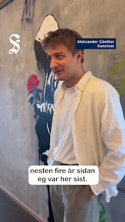 Aleksander Günther har laga kunst til kommunestyresalen i Fitjar. Video: Jonas Tislevoll